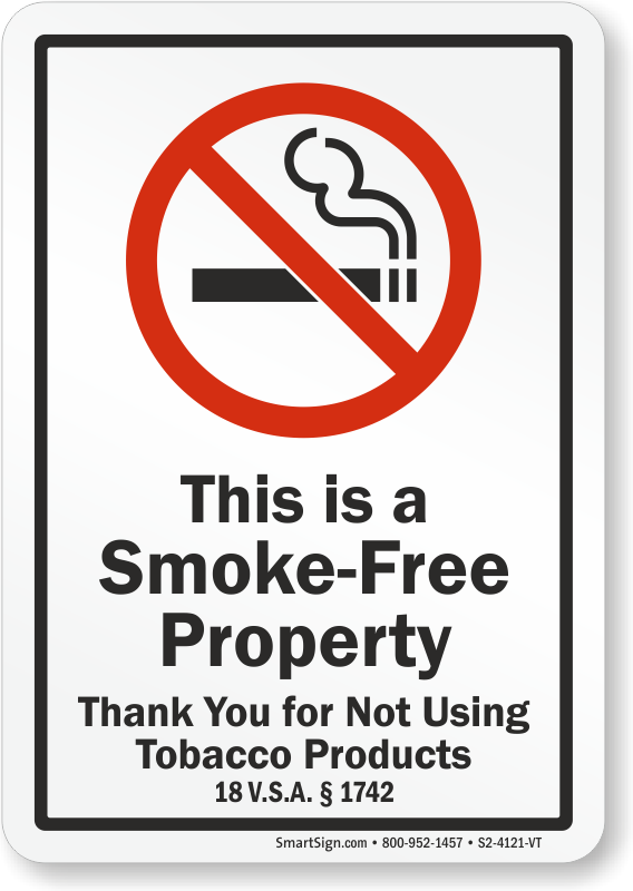 Browse our selection of Vermont No Smoking Signs. Our signs are made to meet state guidelines. If you don't see the sign you want, feel free design a custom sign with our online wizard.