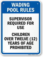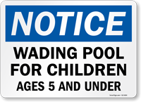 Wading pool signs often specify an age limit, such as "children 5 and under only", to keep older, larger kids from playing roughly in the toddler area. this is a common addition to pool rules signs.