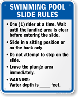 Don't think of these signs as fun blocks--think of them as techniques to help you have an even better slide! Enhance safety and fun with Water Slide Rules Signs!