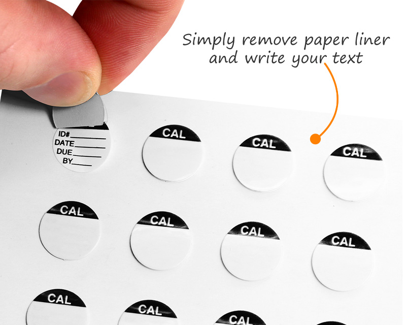 Behold, the most extensive collection of Write-on Vinyl Calibration Labels is just a click away! For more compact items, our tiny calibration dots give you bold colors to color-code and fill in vital calibration information.Take advantage of our sharp custom designs that let you add your logo and custom text to any label set. Just write in your message with a pen, pencil, or marker for a smudge-free label.
