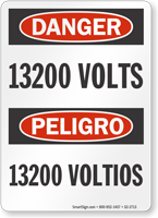 Bilingual OSHA Danger Sign: 13200 Volts S2-2713