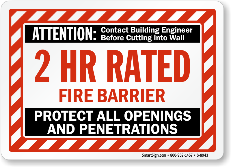 Fire Barrier Label: Attention - 2 Hr Rated Fire Barrier, Protect All Openings And Penetrations