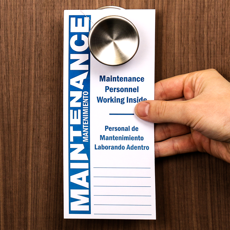 With message in English and Spanish, this hang tag informs residents about the ongoing maintenance work inside. Great for Hispanic communities and apartments.