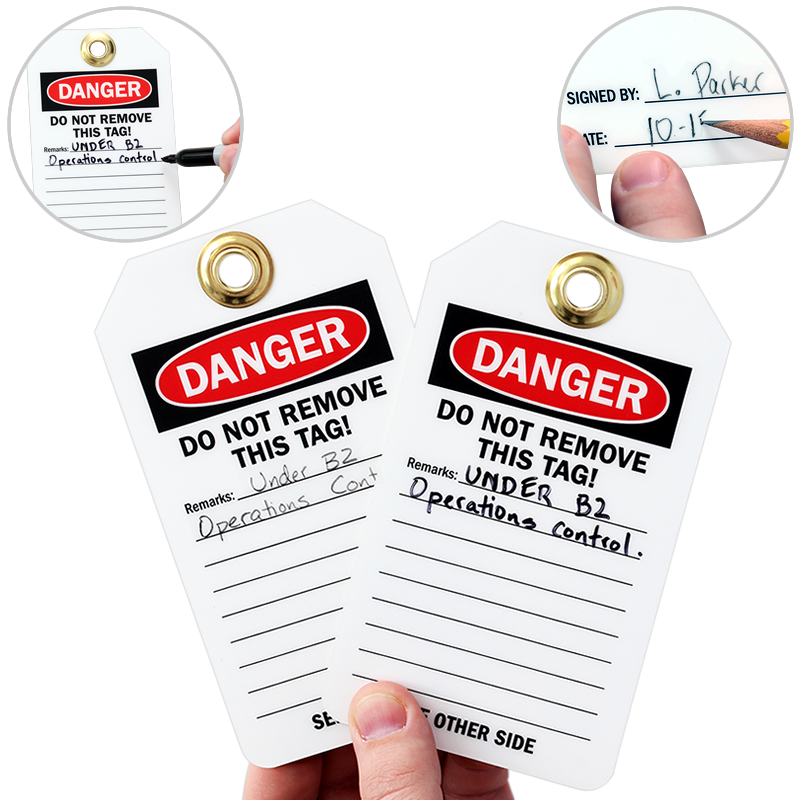 For on-the-spot tagging purposes, use our 2-Sided Blank Self Laminating Tags. OSHA Danger header grabs attention and ensures safety.