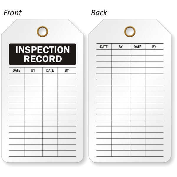 Tag features a table on both sides where you can mark the date and details of each inspection.