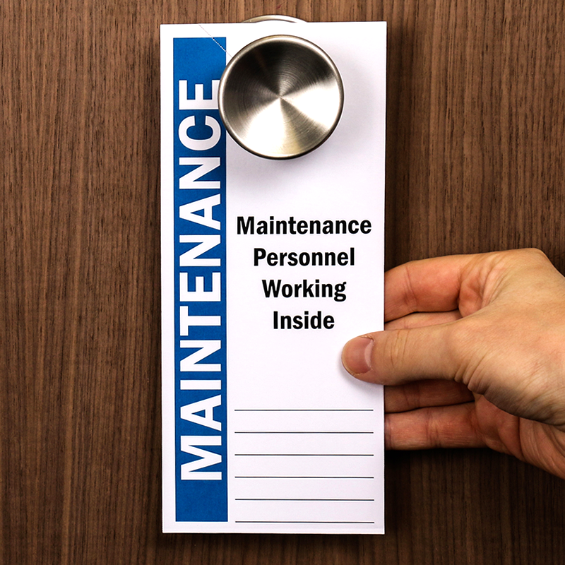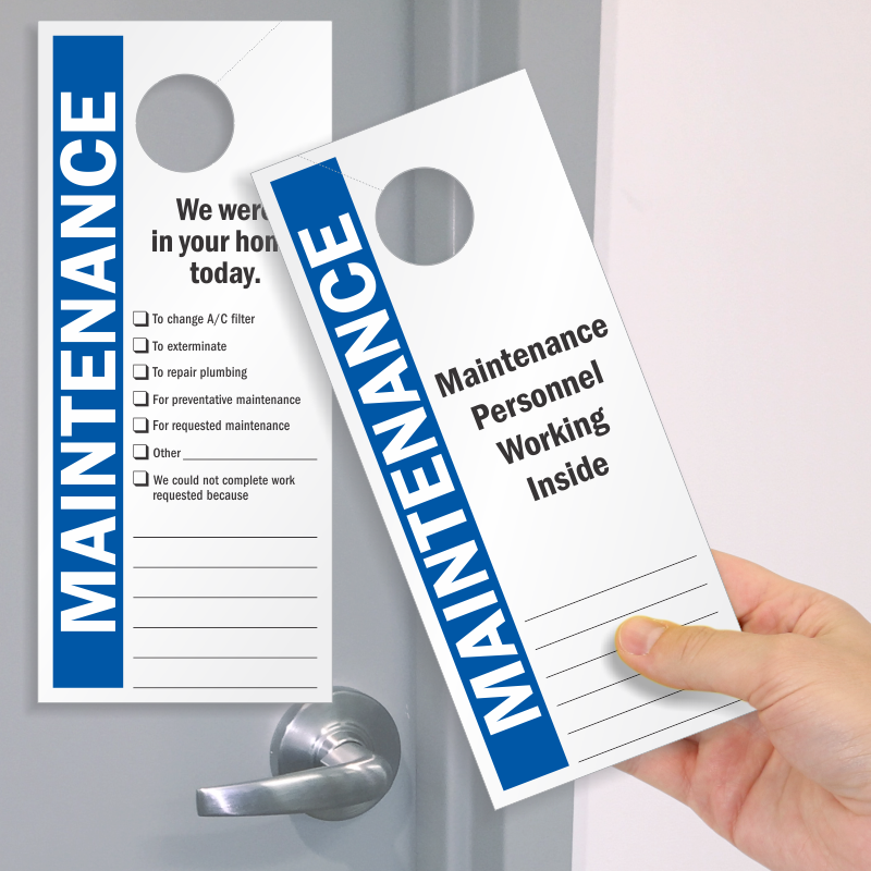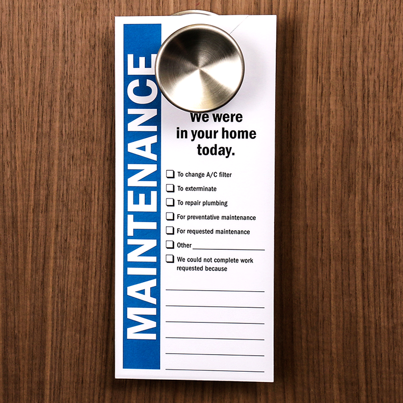 Use this double-sided maintenance tag to notify residents of entry and the reason for the visit. Writable surface accepts pen or marker.