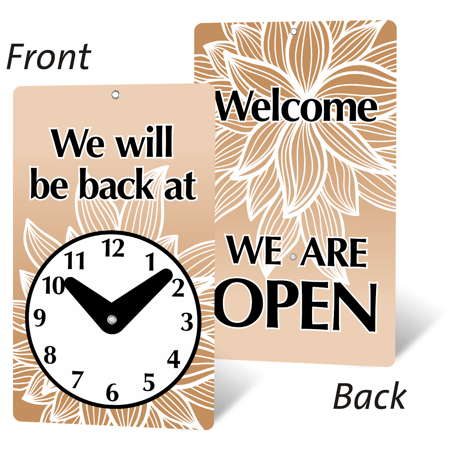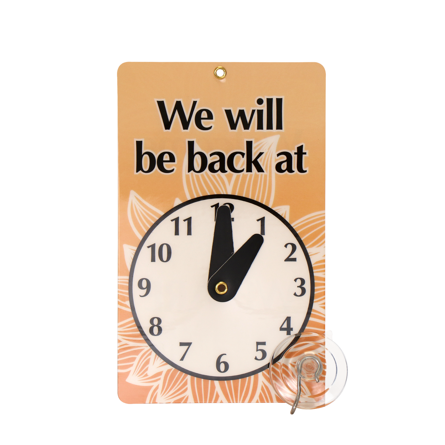Size: 7.75" x 4.75"Material Type: Laminated Plastic Be Back Clock Sign Verified Purchase