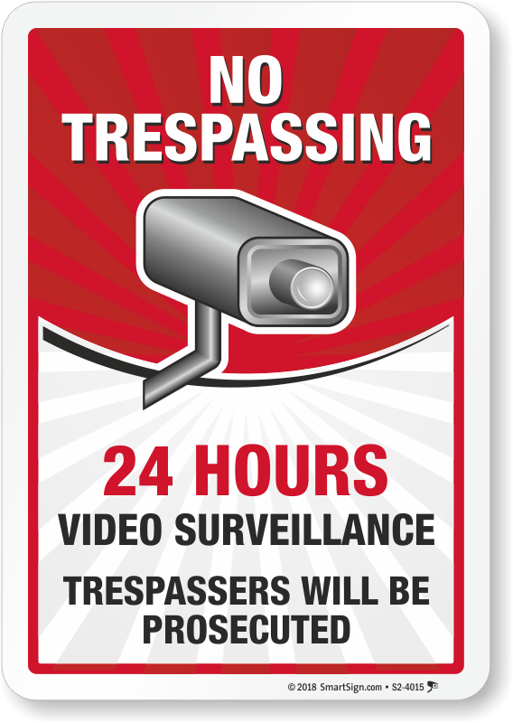 No Trespassing Sign: 24 Hour Video Surveillance, Trespassers Will Be Prosecuted S2-4015