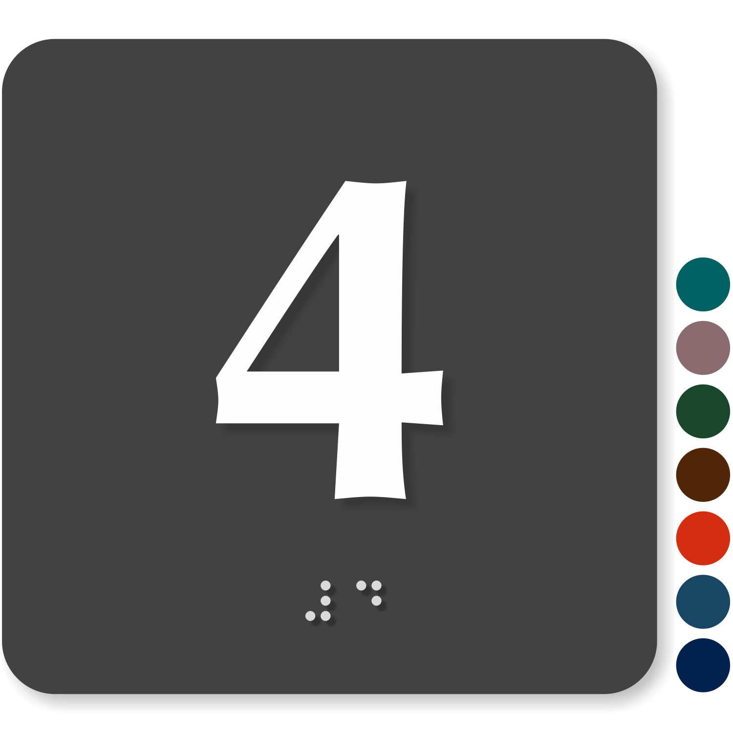 4" x 4" TactileTouchâ„¢ Braille Sign: Sign With Number "4" SE-2681-4