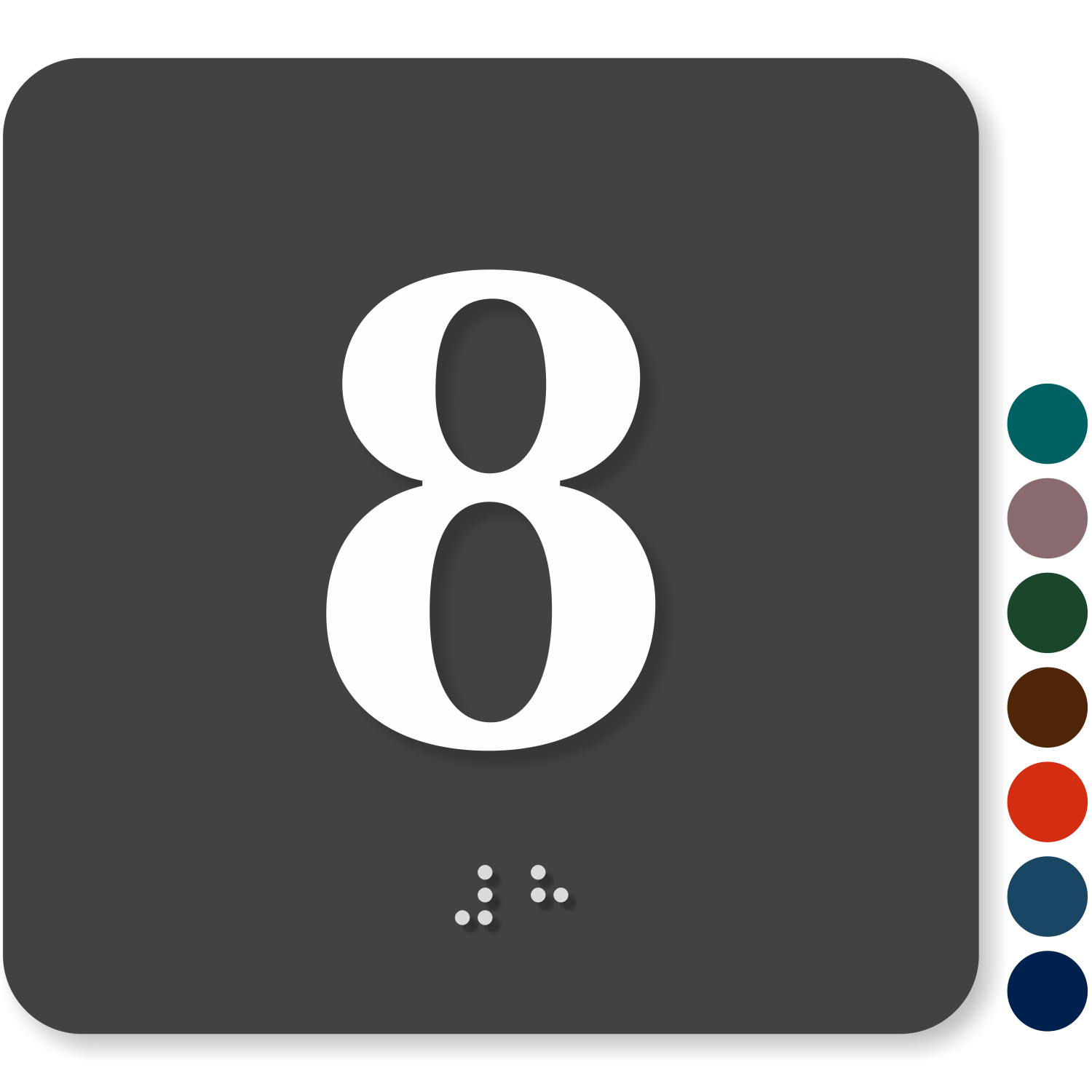 4" x 4" TactileTouchâ„¢ Braille Sign: Sign With Number "8" SE-2681-8