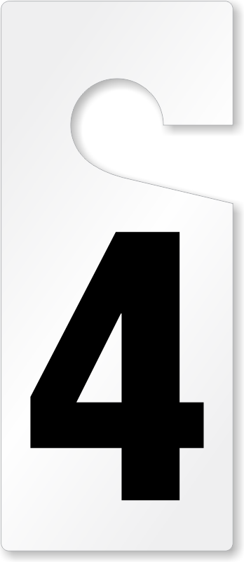 Incase there are several similar rooms in your facility, a double-sided Numbered Door Hanger removes confusion and helps everyone in quick identification. This one is ideal for Room Number 4.