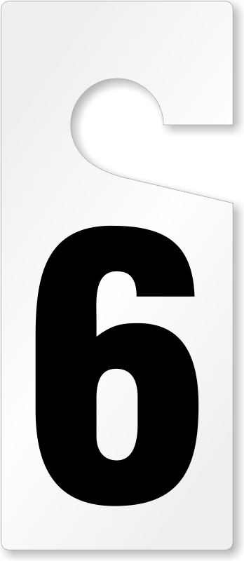 Designate rooms in your facility in sequential order with Numbered Door Hangers. This double-sided door tag is for Room Number 6.