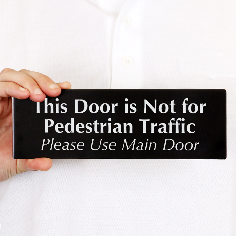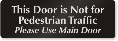 3" x 9" DiamondPlateâ„¢ Door Sign: This Door Is Not For Pedestrian Traffic Please Use Main Door DP-0081 Learn More...