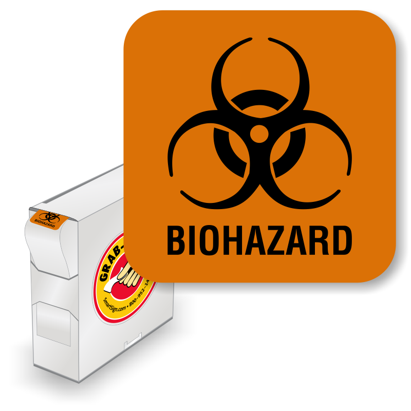 - These Biohazard labels come with a convenient dispenser.