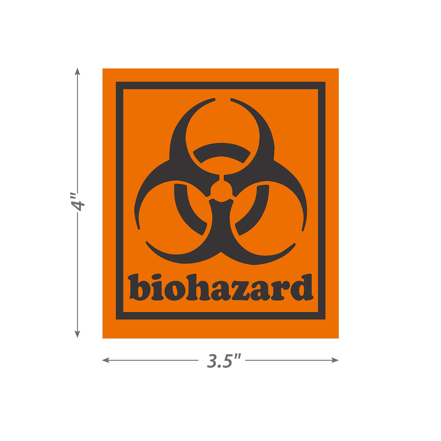 - To help organize your labels, a convenient label dispenser makes it easy to grab and go with your Biohazard labels.