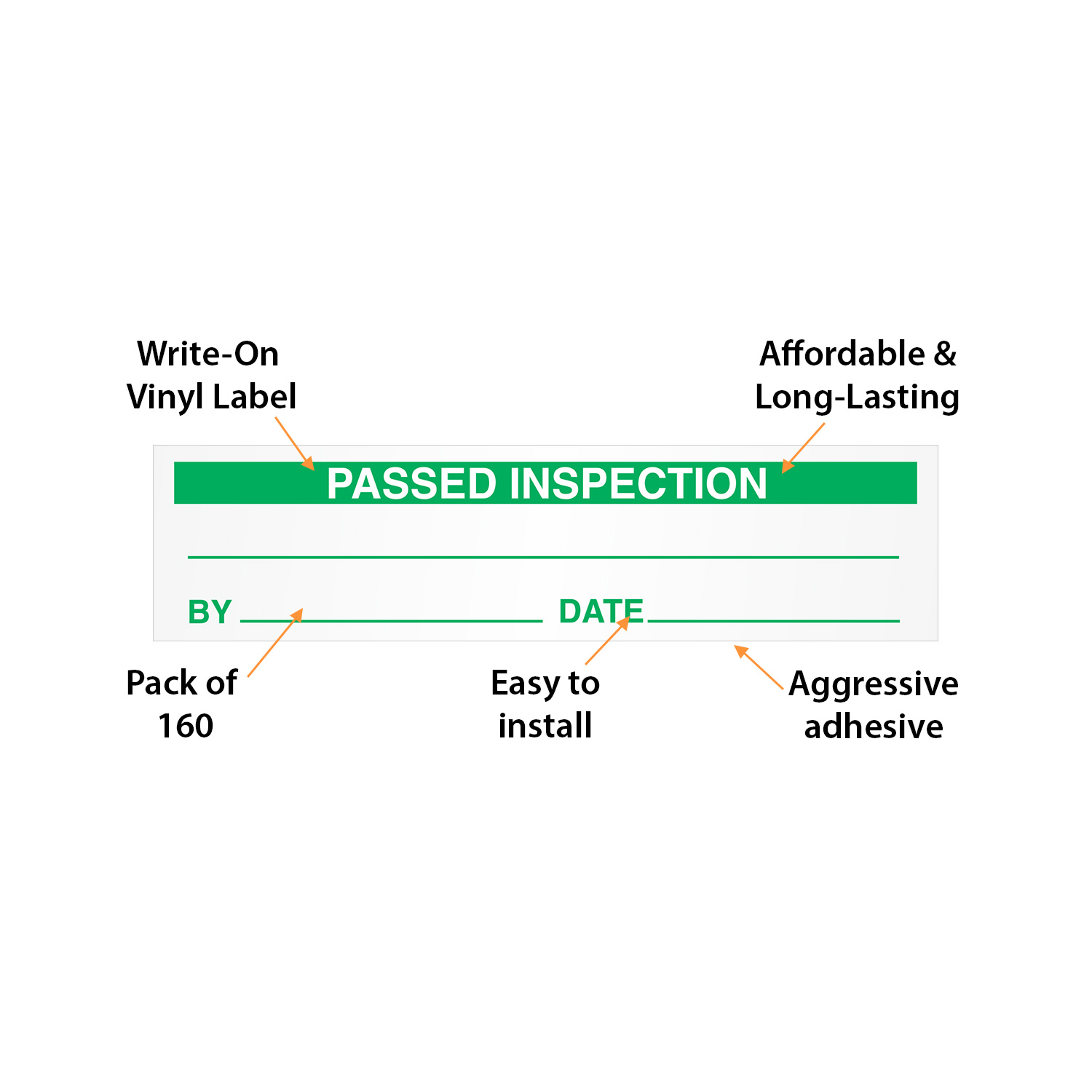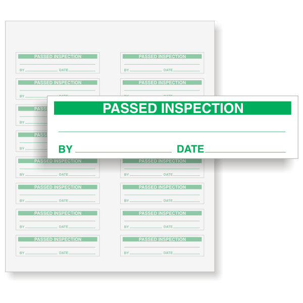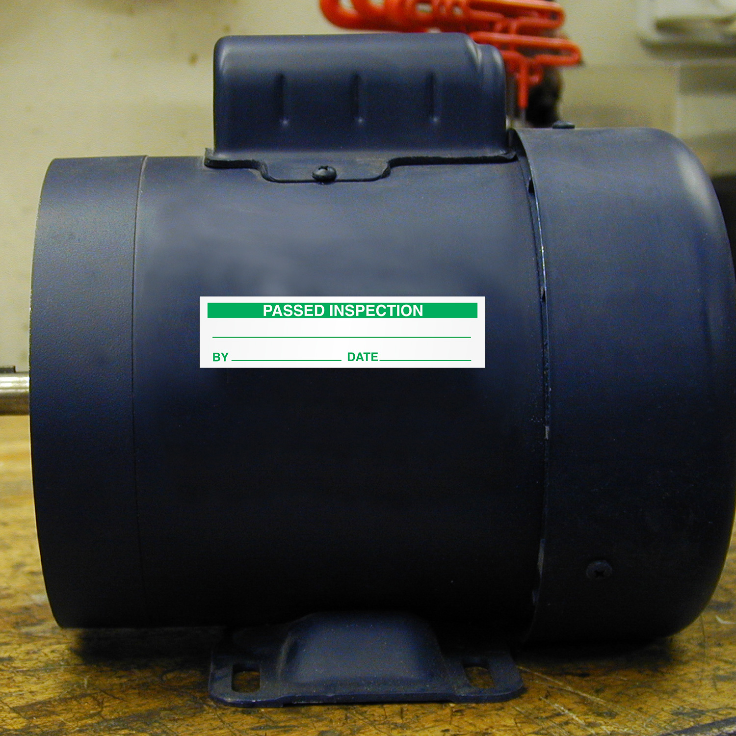 Inventory and inspection can be done faster and more effectively with bold green-on-white PASSED INSPECTION labels. These durable vinyl labels are ready for your written information.