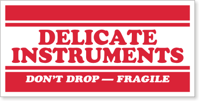 Fragile labels tell shippers that they should handle the package with care. The package contains delicate instruments that are fragile.