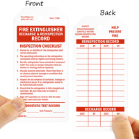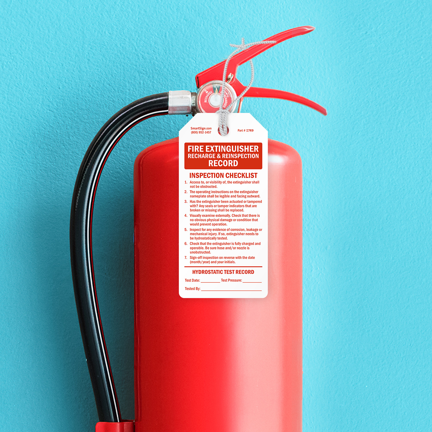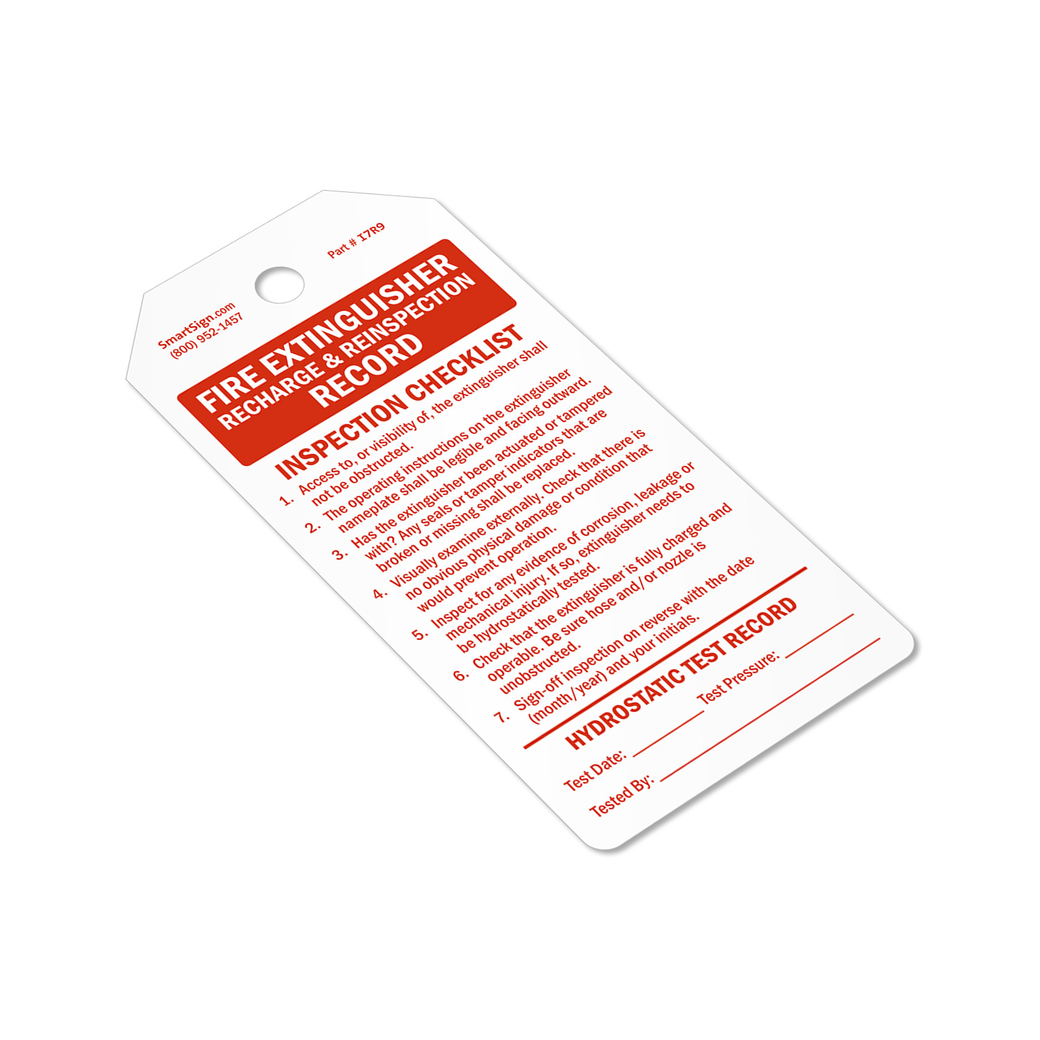 Make sure that your fire extinguisher will work well in an emergency. This tag provides a handy record of each reinspection and a checklist to make sure that the fire extinguisher is properly placed, charged and maintained.