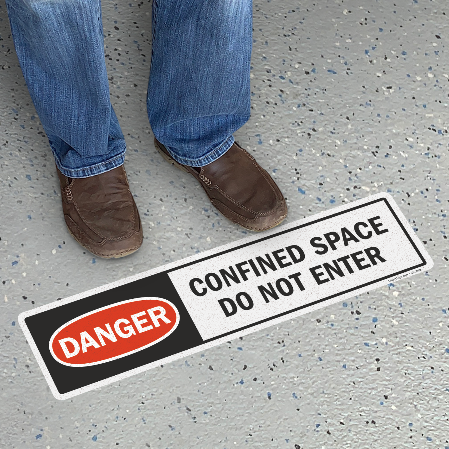 Mark your confined spaces more effectively. This Danger sign calls for attention and prevent dangerous accidents. Apply this durable vinyl floor sign onto almost any flat surface.