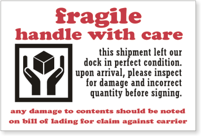 - This simple label helps you alert the receiver that they must inspect the package carefully. Avoid unfortunate disputes over damage and liability.
