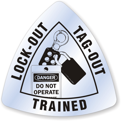 Triangle Hard Hat Decals: Lock-Out Tag-Out Trained HH-0348