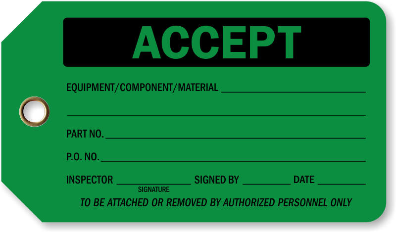 A simply message can prevent dangerous accidents. Use this simple message to mark accepted items as part of your inspection system.