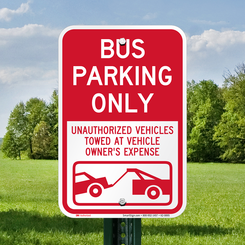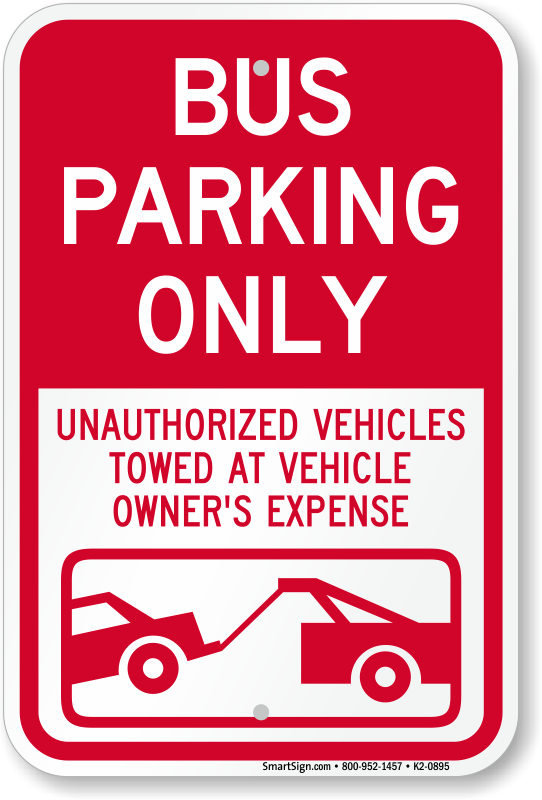 Parking Restriction Sign: Bus Parking Only, Unauthorized Vehicles Towed At Owner Expense with Graphic K2-0895 Learn More...