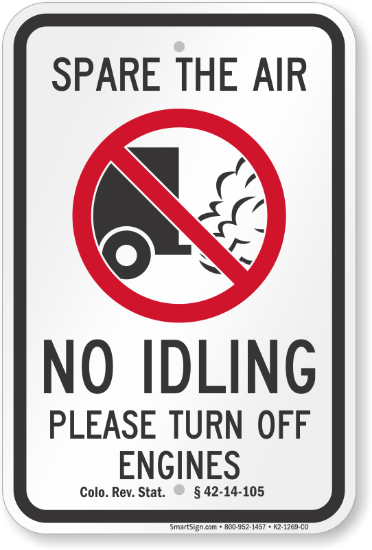 State Idle Sign for Colorado: Spare The Air, No Idling, Please Turn Off Engines, Colo. Rev. Stat. § 42-14-105 K2-1269-CO Learn More...