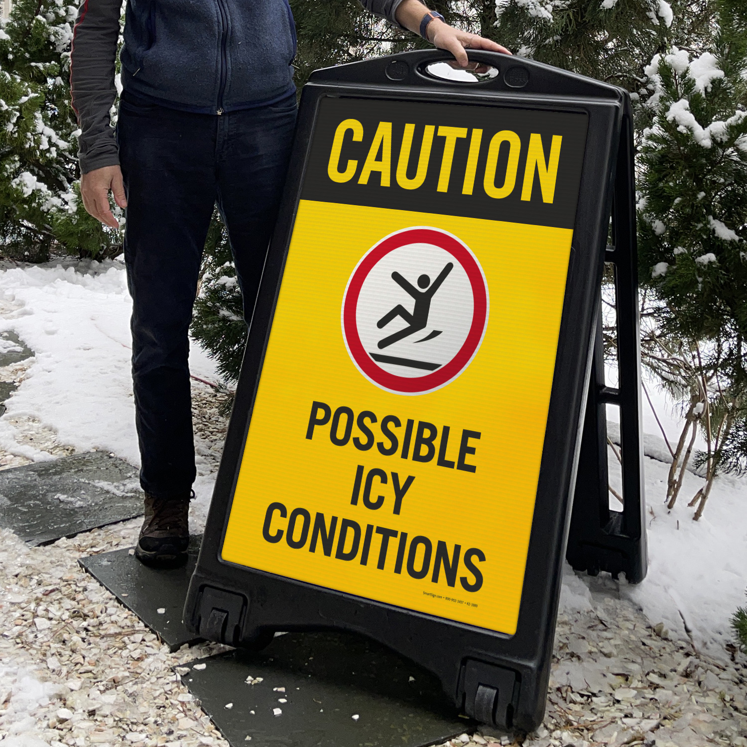 A-Frame Portable Sidewalk Sign: Caution - Possible Icy Conditions Learn More...