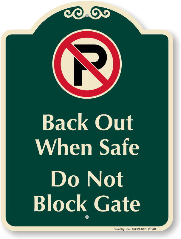 24 in. x 18 in. SignatureSign: Back Out When Safe, Do Not Block Gate with No Parking Symbol K2-1087 Learn More...