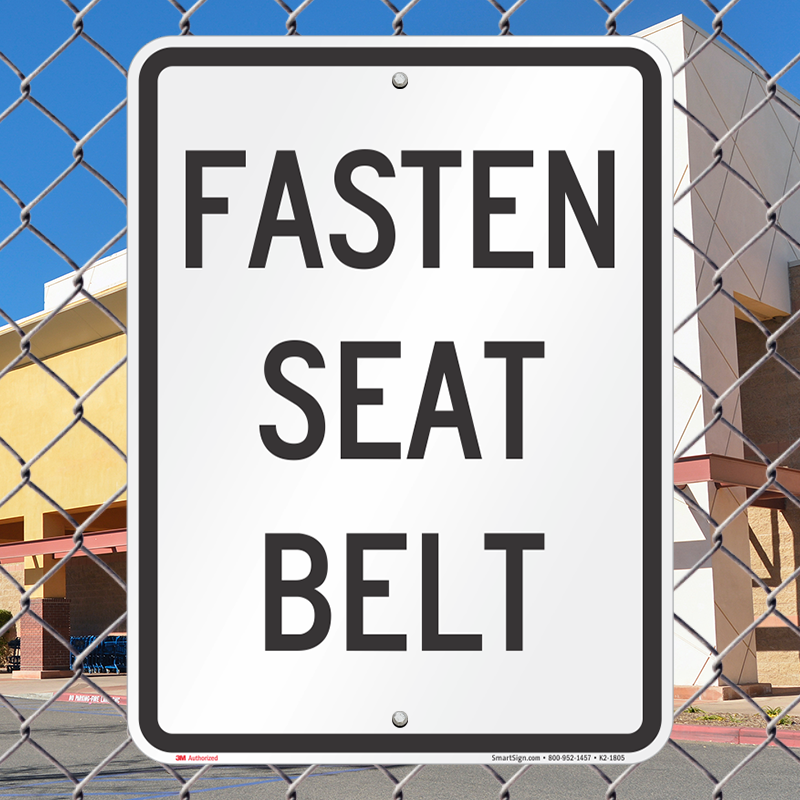 Save lives save dollars by minimising severe road accident injuries while driving by reminding drivers of all ages to buckle up with this Fasten Seat Belt sign.