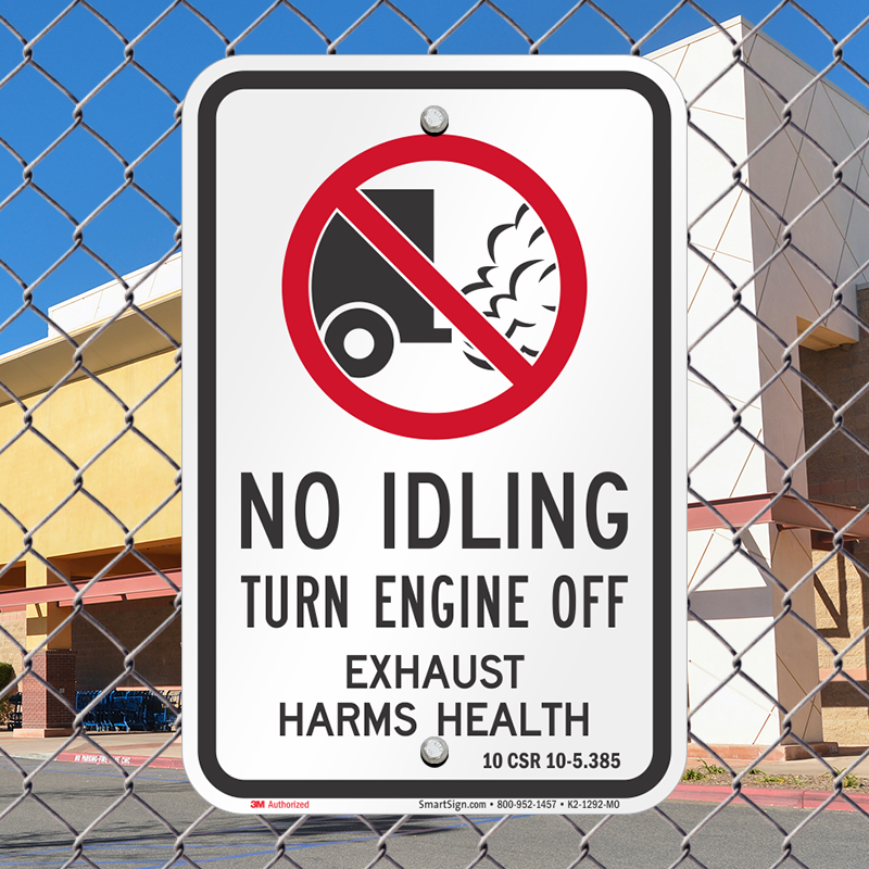 State Idle Sign for Missouri: No Idling, Turn Engine Off, Exhaust Harms Health, 10 CSR 10-5.385 K2-1292-MO Learn More...