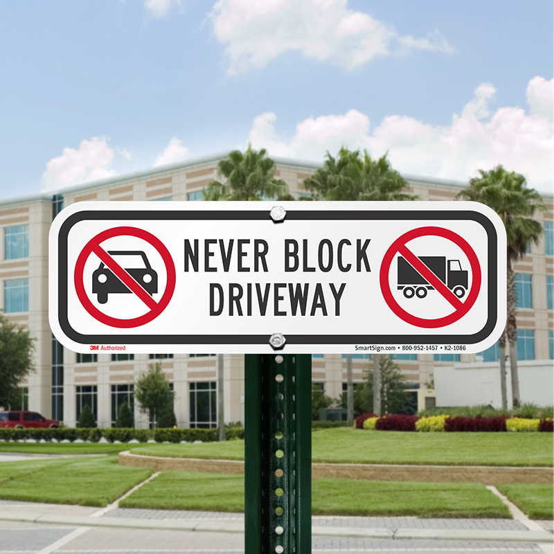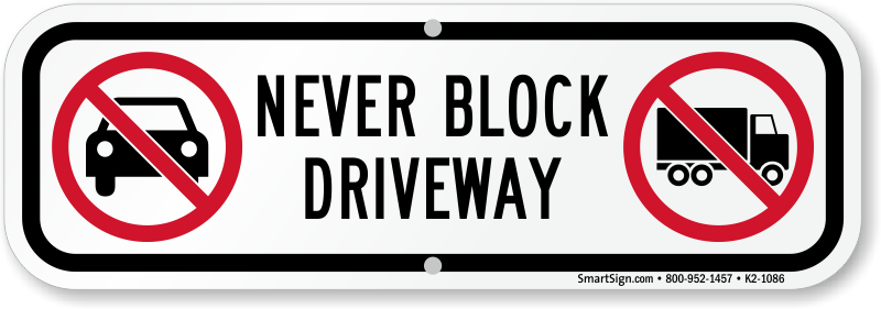 Parking Restriction Sign: Never Block Driveway with No car and No Truck Symbols K2-1086 Learn More...