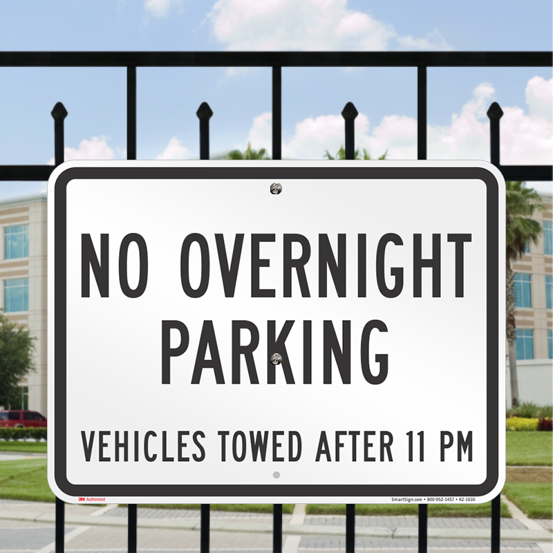 Use this No Parking Sign to prevent drivers from parking their vehicle overnight at your parking lot.