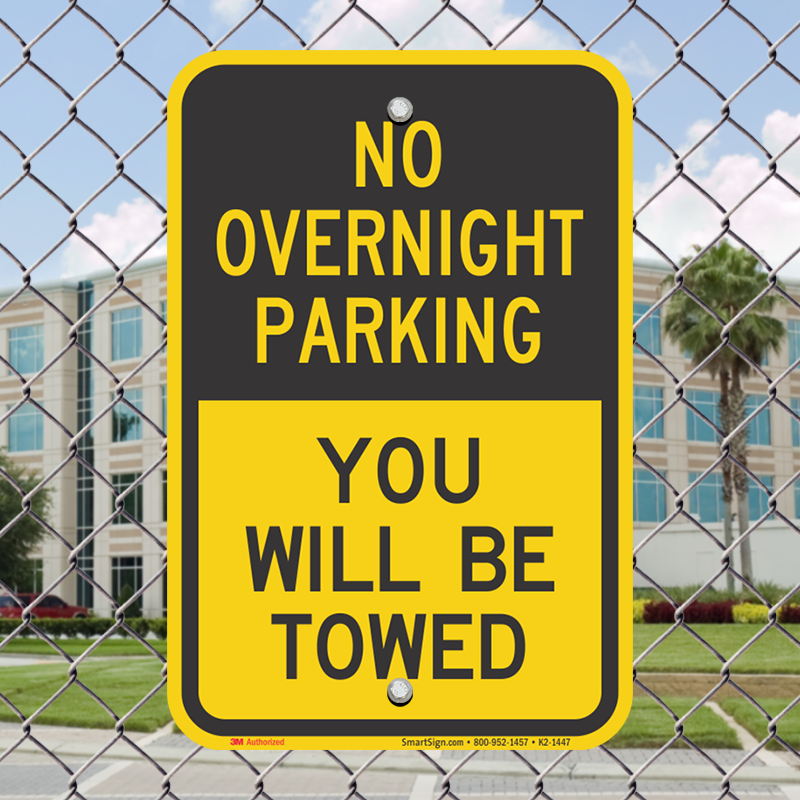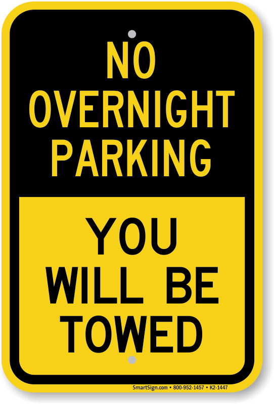 No Parking Sign: No Overnight Parking, You Will Be Towed K2-1447 Learn More...