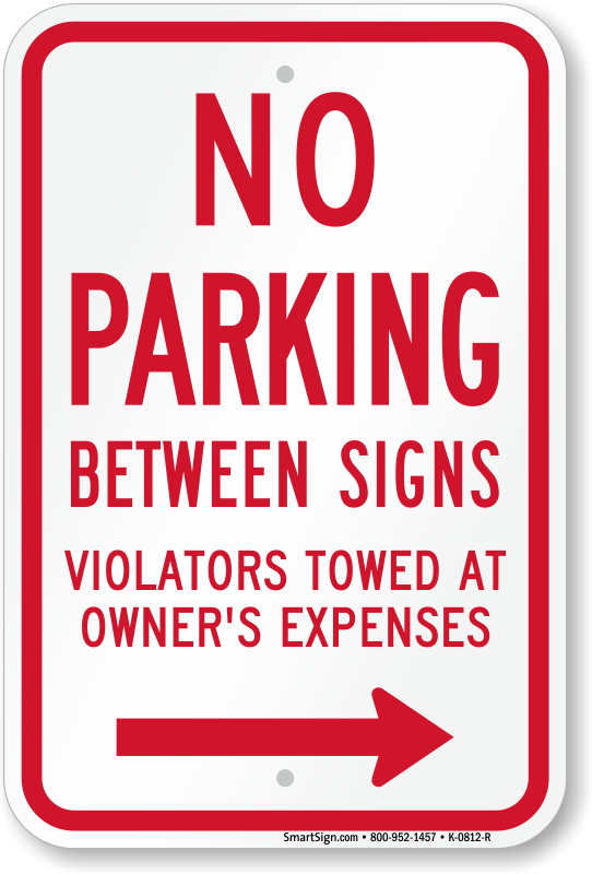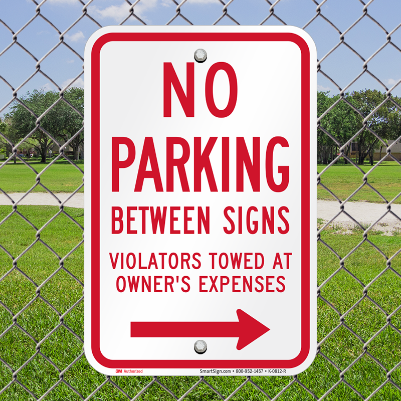 Prevent drivers from parking their vehicle between signs. Use this directional No Parking Sign to inform them that their vehicle will be towed away if they attempt parking.
