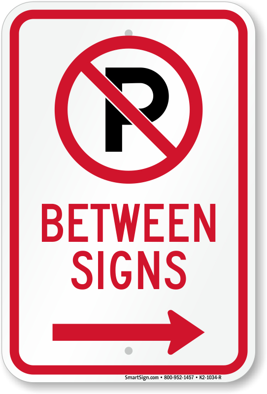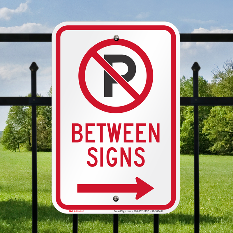 No Parking Sign: No Parking Between Signs with Right Arrow and Symbol Learn More...