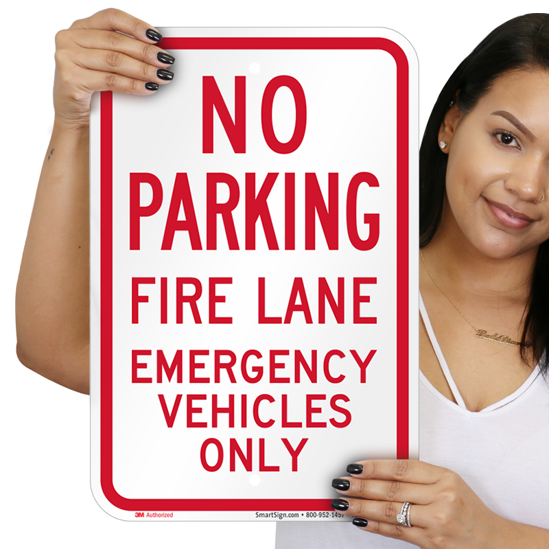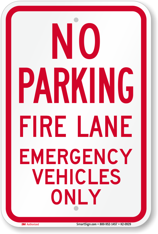 No Parking Sign: Fire Lane, Emergency Vehicles Only Learn More...