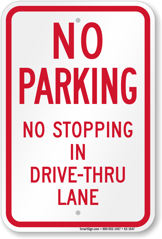 No Parking Sign: No Stopping In Drive-Thru Lane K2-1647