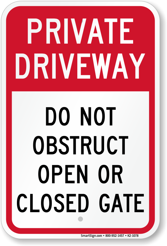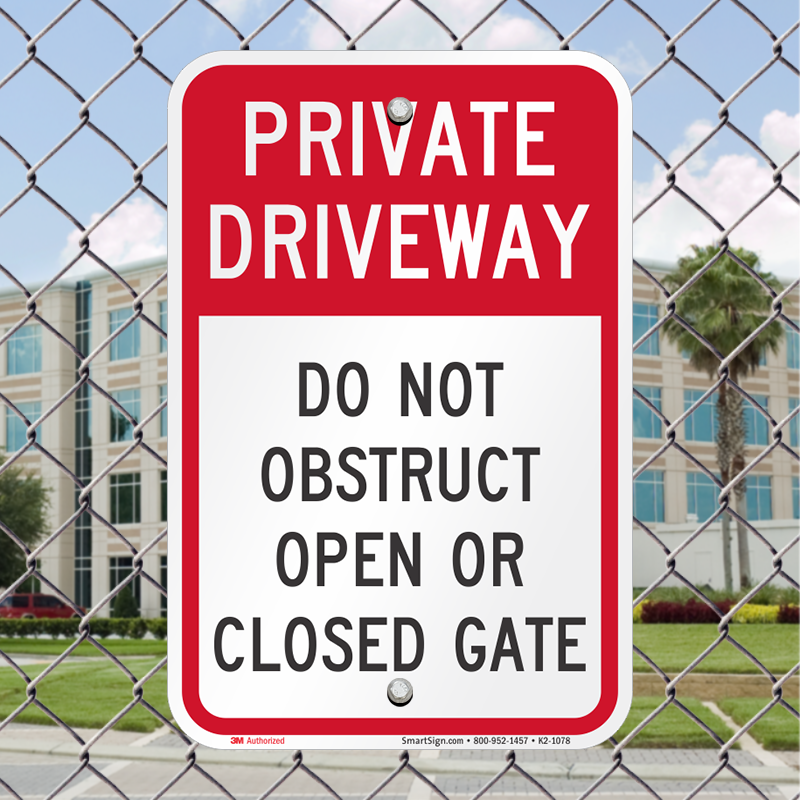 Parking Restriction Sign: Private Driveway, Do Not Obstruct Open or Closed Gate K2-1078 Learn More...