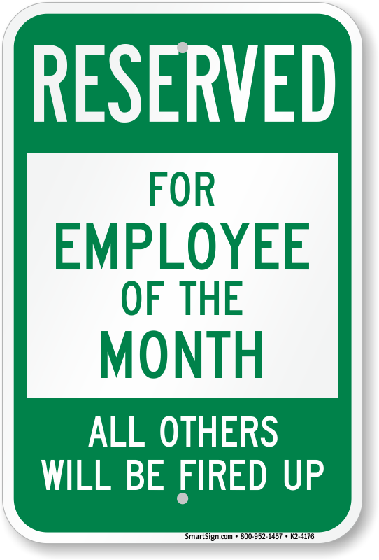Reserved Parking Sign: Reserved For Employee Of The Month All Others Will Be Fired Up K2-4176
