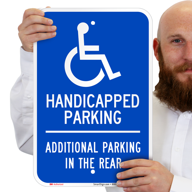 Reserved Parking Sign: Handicapped Parking, Additional Parking In The Rear with Graphic K2-0745 Learn More...