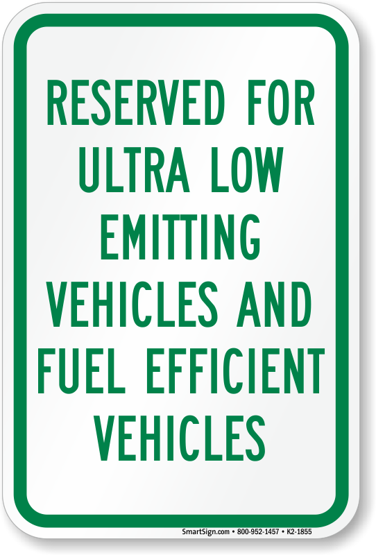 Reserved Parking Sign: Reserved For Ultra Low Emitting Vehicles and Fuel Efficient Vehicles K2-1855 Learn More...