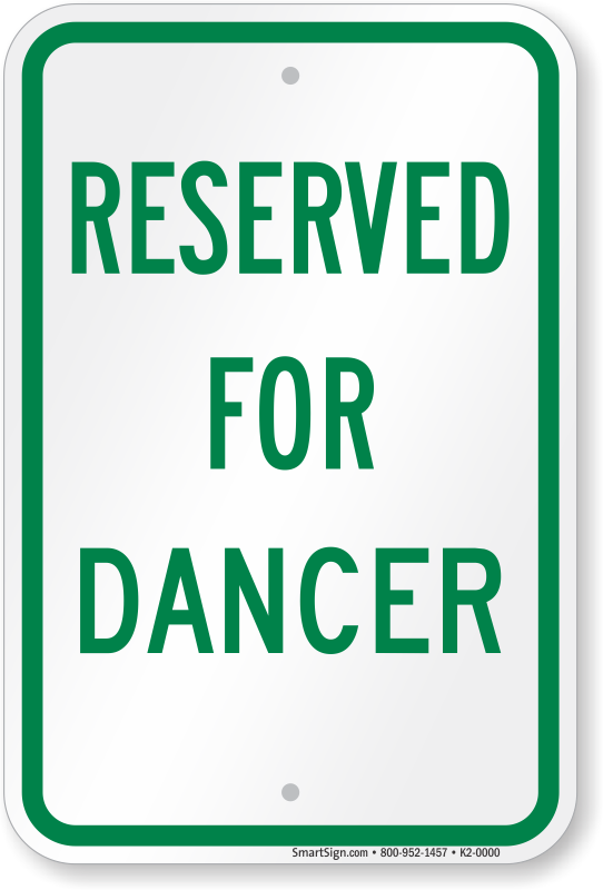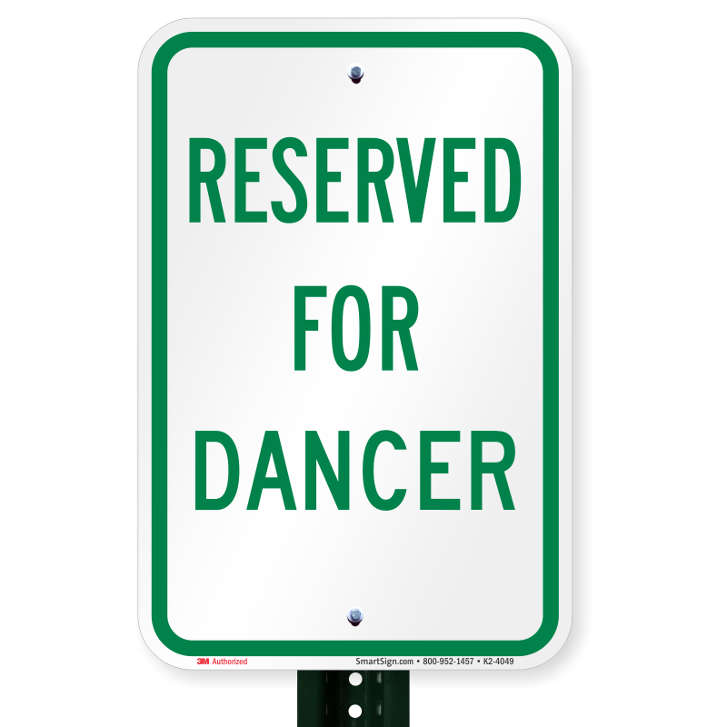 Reserved Parking Sign: Reserved For Dancer K2-4049 Learn More...
