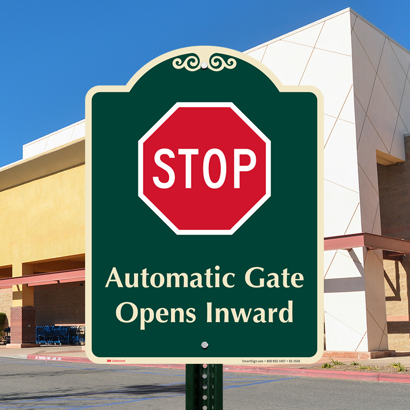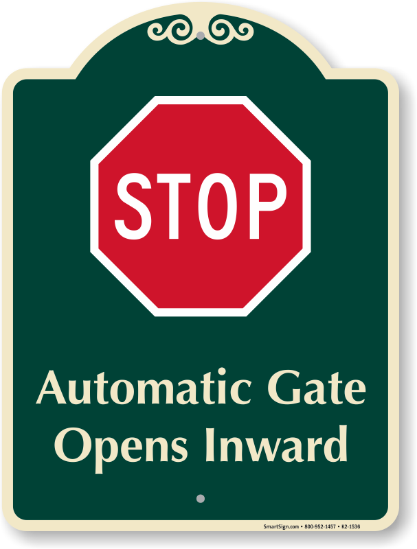 24 in. x 18 in. SignatureSign: Stop, Automatic Gate Opens Inward K2-1536 Learn More...