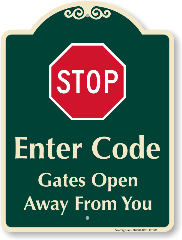 24 in. x 18 in. SignatureSign: Stop, Enter Code, Gates Open Away From You K2-1538 Learn More...