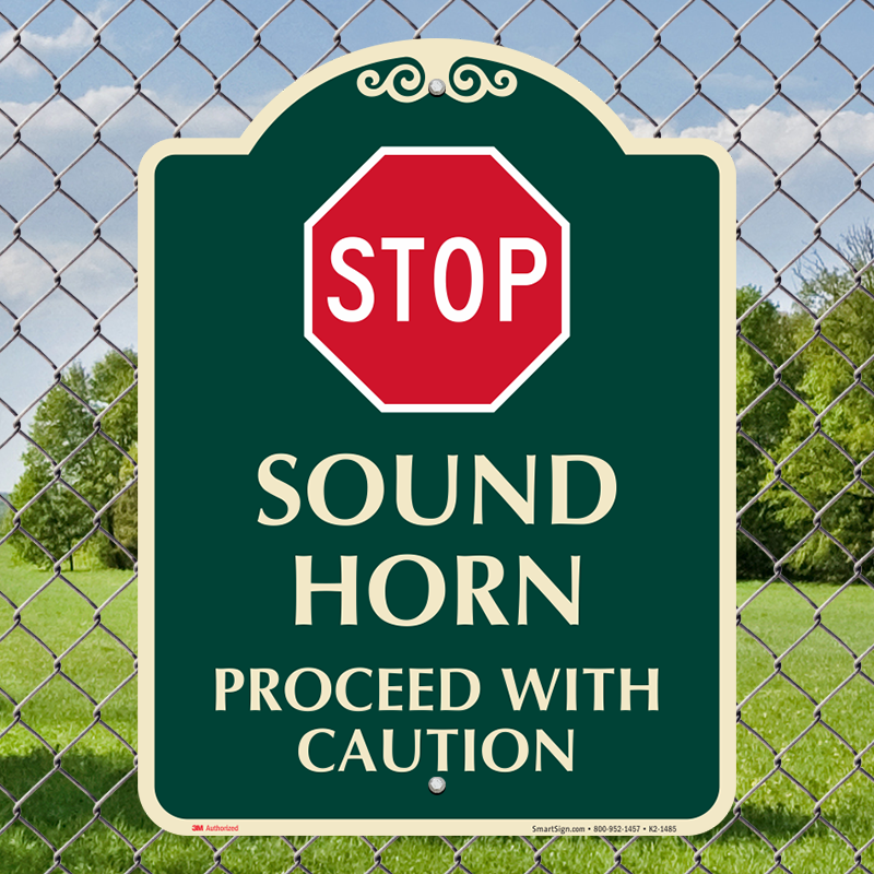 24 in. x 18 in. SignatureSign: Stop, Sound Horn, Proceed With Caution K2-1485 Learn More...