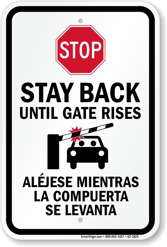 Use this Stay Back Sign to inform drivers to wait till the automatic gate rises completely and then proceed.