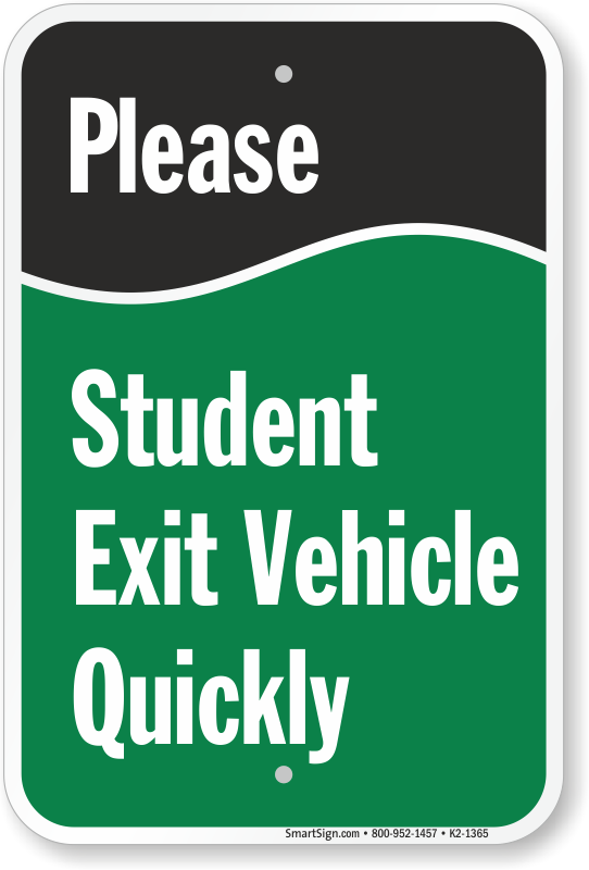 Drop-Off Sign: Please, Student Exit Vehicle Quickly K2-1365 Learn More...