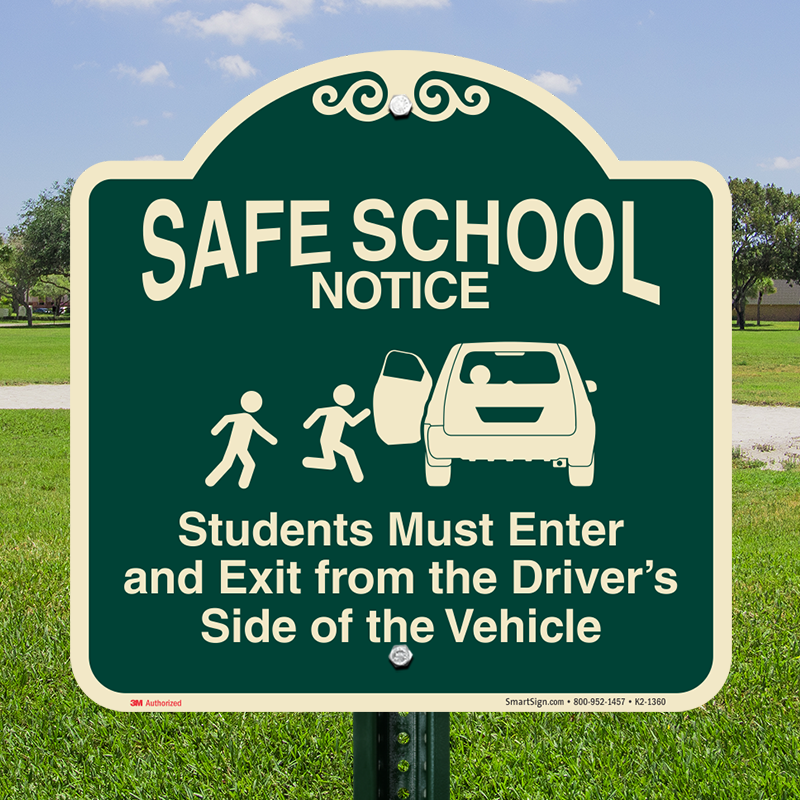 18 in. x 18 in. SignatureSign: Safe School Notice, Students Must Enter and Exit from Driver Side of the Vehicle K2-1360 Learn More...